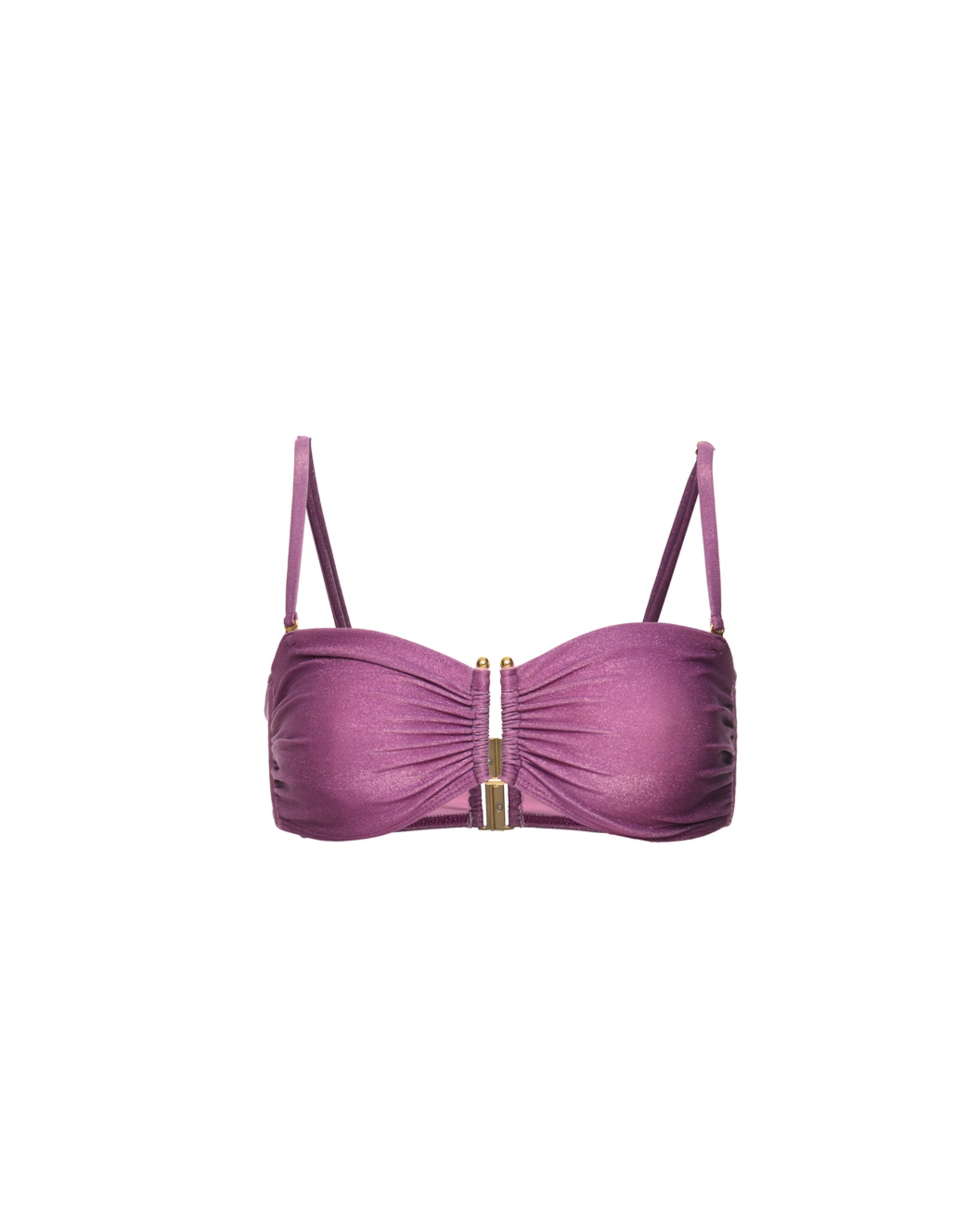 Le Haut de Maillot de Bain Bandeau Séparateur Tatiane de Freitas revisite la coupe bandeau avec une élégance moderne. Son anneau doré apporte une touche raffinée et crée un jeu de fronces délicat, pensé pour flatter toutes les poitrines.